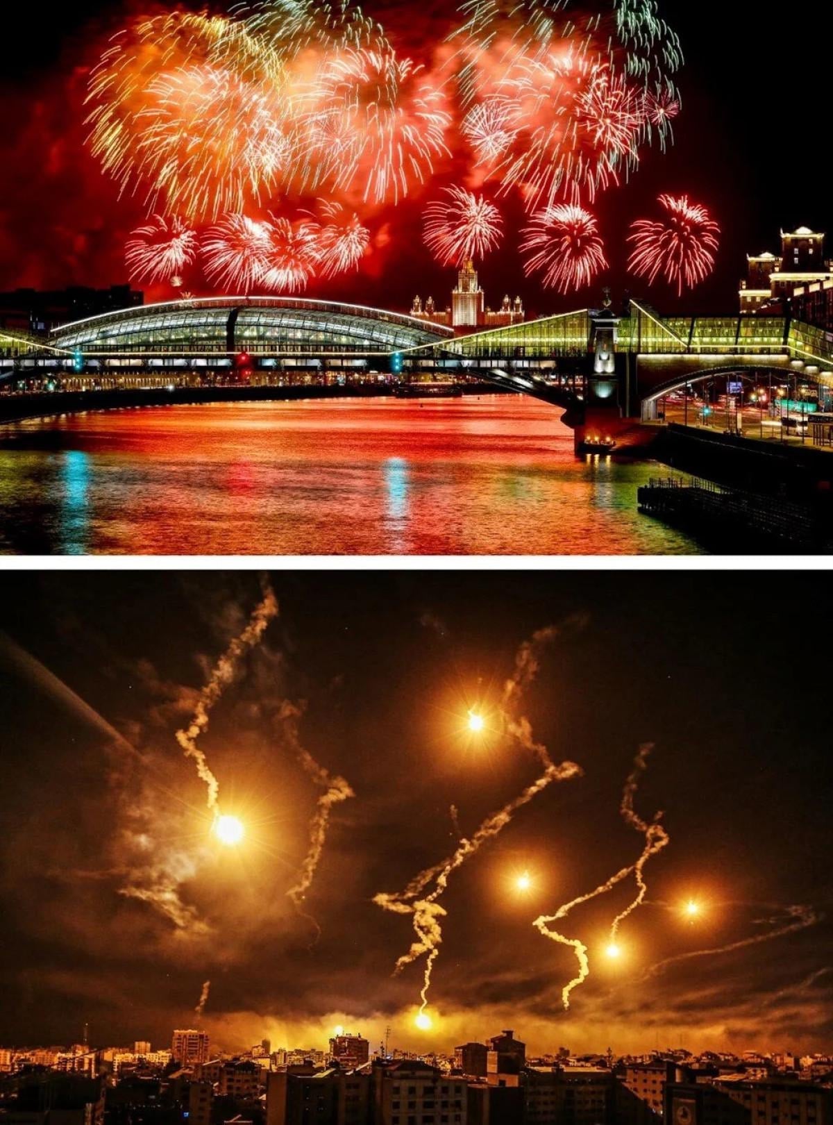 Rusya'nın başkenti Moskova'da 9 Mayıs Zafer Günü kutlamaları kapsamında havai fişek gösterisi düzenlendi. Luzhniki spor kompleksinde atılan havai fişekler, Moskova Devlet Üniversitesini renklendirdi.