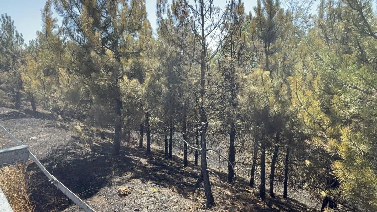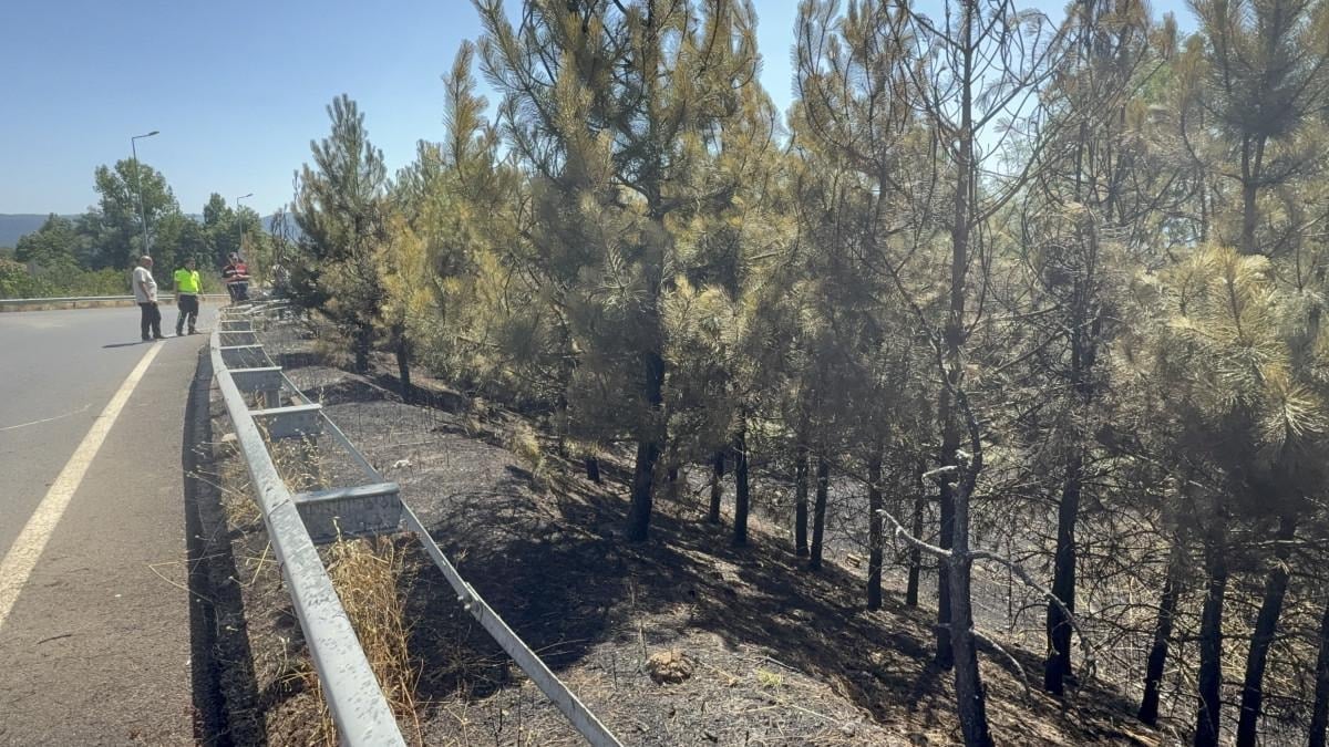 Yangın sonucunda yol kenarındaki otluk alan ile çamlık bölgede kısmi yanmalar meydana geldi.