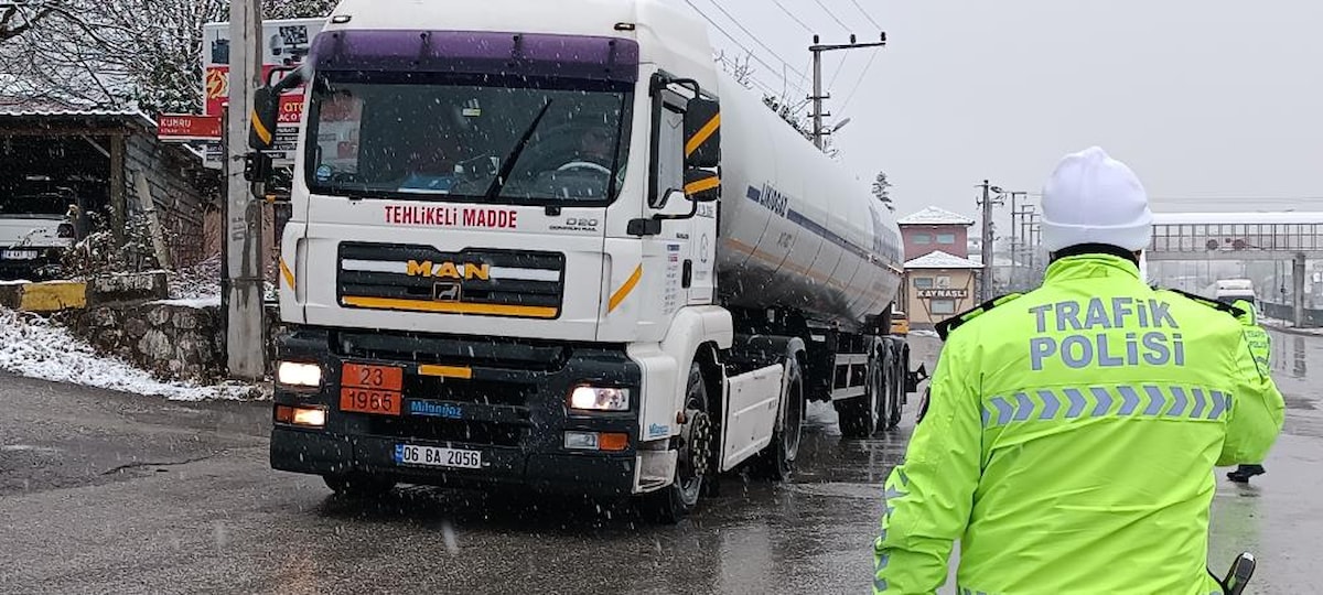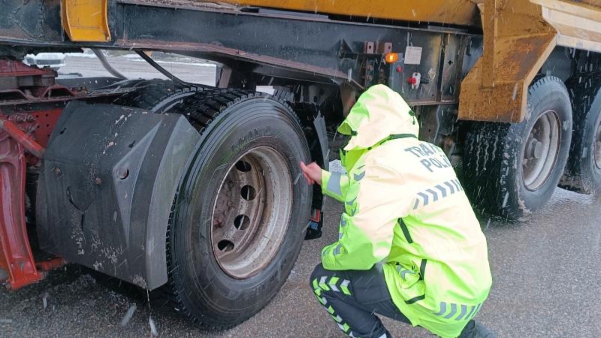 Bolu Dağı’nın çıkış noktası olan Kaynaşlı’da önlem alan ekipler, özellikle kar lastiği takma zorunluluğu olan tırlar, kamyon ve otobüslerde denetimler yapıldı.