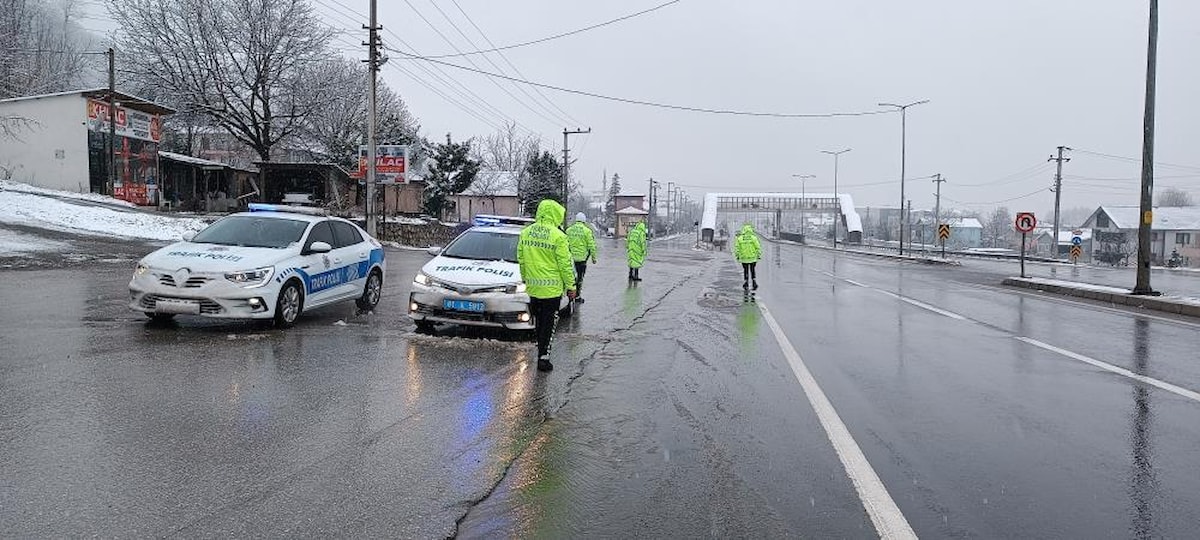 Düzce Emniyet Müdürlüğü Bölge Trafik Denetleme Şube Müdürlüğü ekipleri de Bolu Dağı çıkışında önlemlerini artırdı.