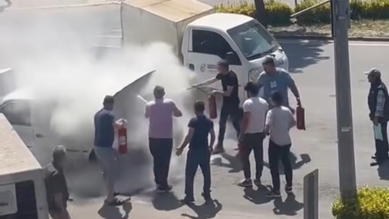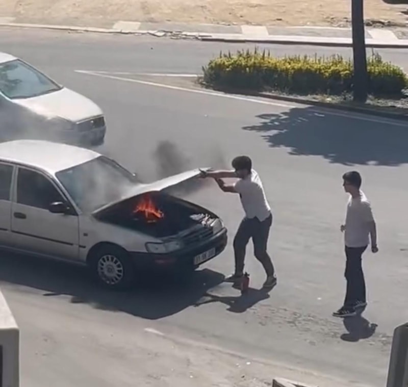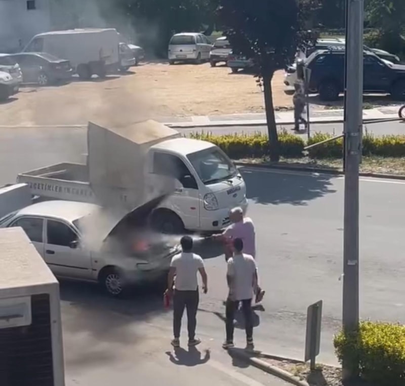 Sürücü aracını durdurup motor kapağını açtığında alevlerin yükseldiğini fark etti.