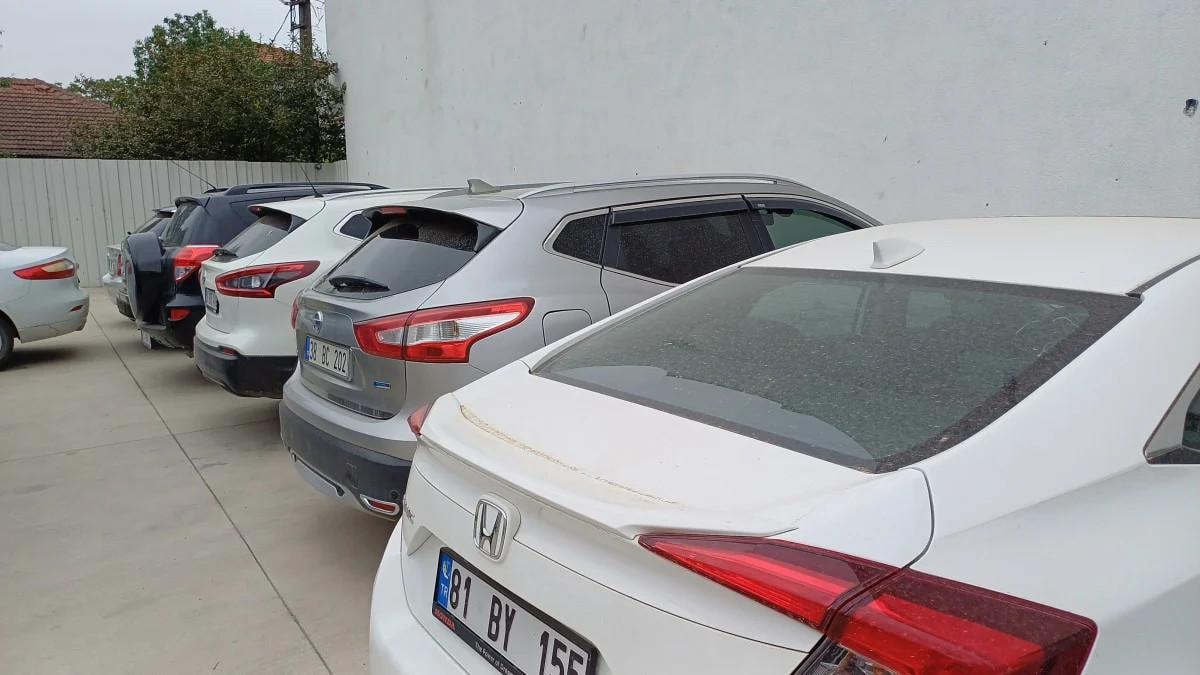 Düzce'de toz bulutunun ardından etkili olan kısa süreli yağışı, hem günlük yaşamı olumsuz etkiledi hem de araçların üzerini çamurla kapladı.