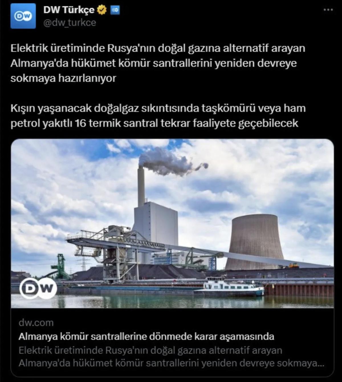 Enerji sıkıntısından dolayı termik santrallere geri dönüş kararı alan Almanya için “Almanya kömür santrallerine dönmede karar aşamasında” başlıklı bir haber sunan DW’nin, kurulduğu ülkeyi övdüğü, hatta buna 'mecbur' kaldığını belirten ifadeleri dikkat çekmişti.