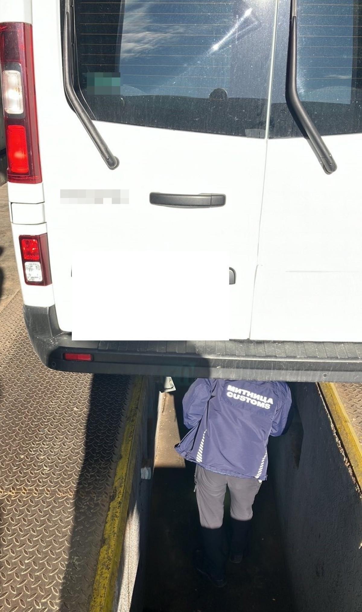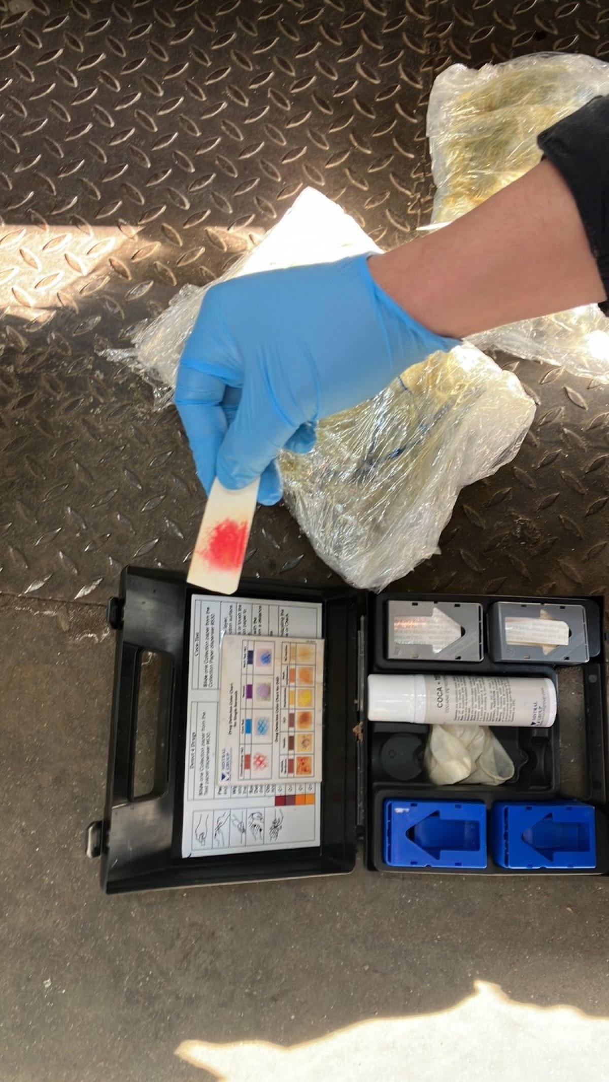 Araç detaylı bir gümrük muayenesinden geçirildi ve bu muayene sırasında çamurluklardan birinin üzerindeki fabrika boşluğunda ve şasinin altında özel olarak yapılmış saklanma yerlerinde, 4 paket kuru yeşil yaprak bulundu.