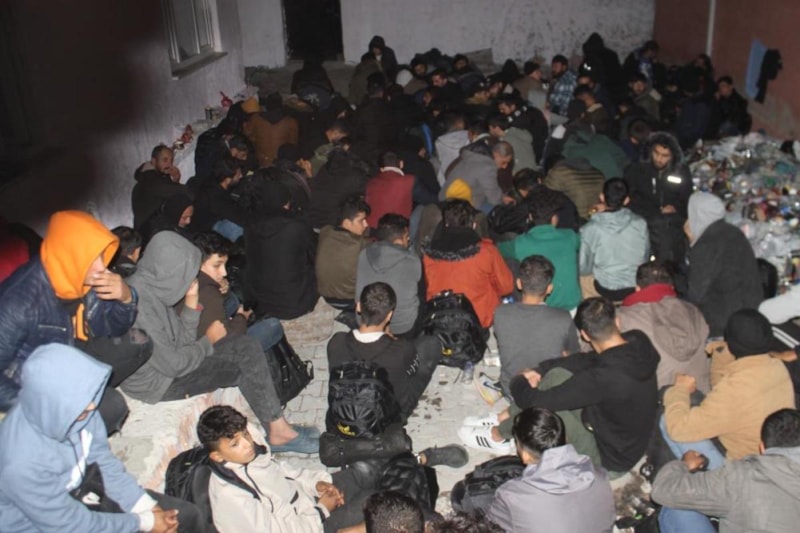 Bir evin giriş ve çıkışında göçmen hareketliliği olduğunu belirleyen polislerin baskınında evin bahçesinde 100'den fazla göçmen yakalandı.