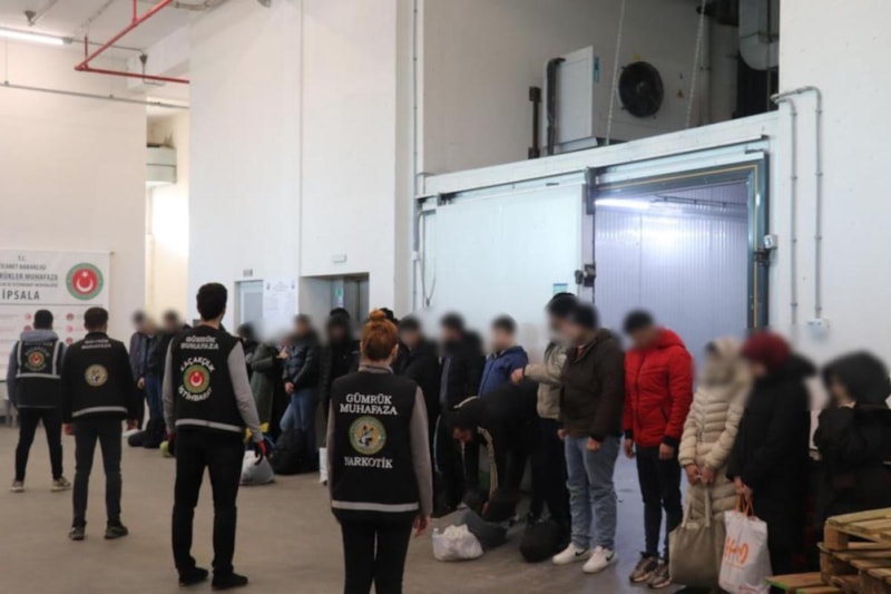 İpsala Sınır Kapısı'ndan Yunanistan'a gitmeye hazırlanan iki tırın dorsesine saklanan 51 düzensiz göçmen, sınırda yapılan x-ray kontrolleri sırasında yakalandı.