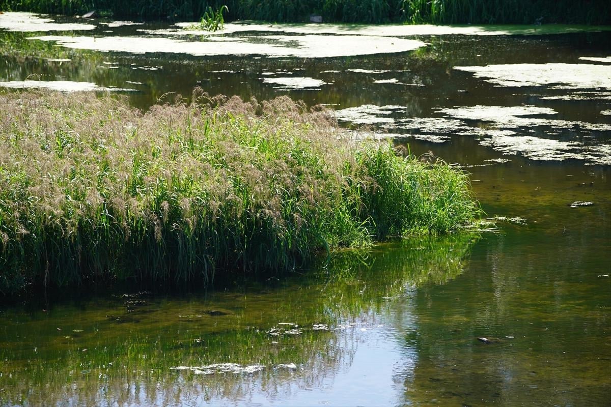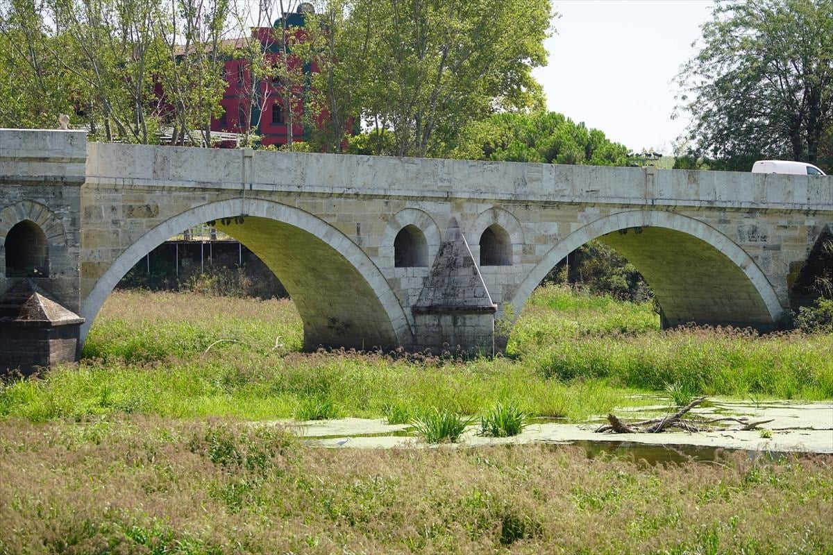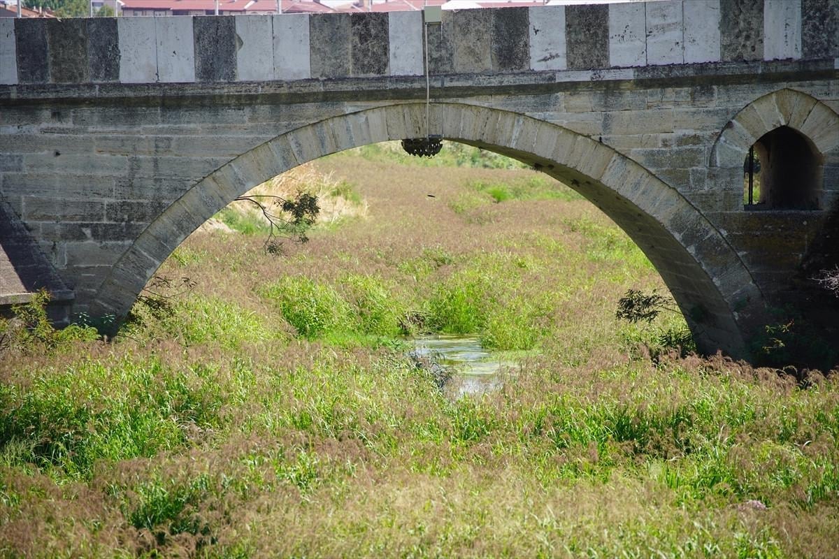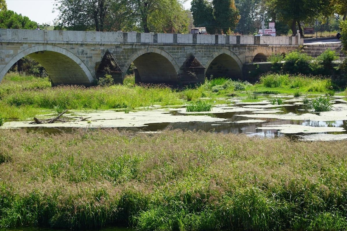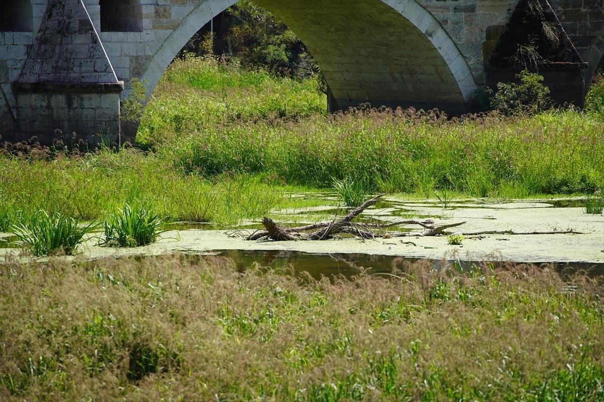 Tunca Köprüsü civarında su akışı büyük ölçüde durdu, nehir yatağı geniş ot öbekleri, sazlıklar ve yosunla kaplandı.