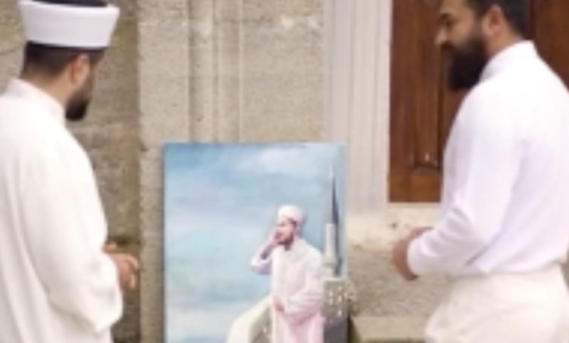 Abdullayev, Selimiye Camisi müezzini Ozan Ceco'yu ezan okurken resmetti.