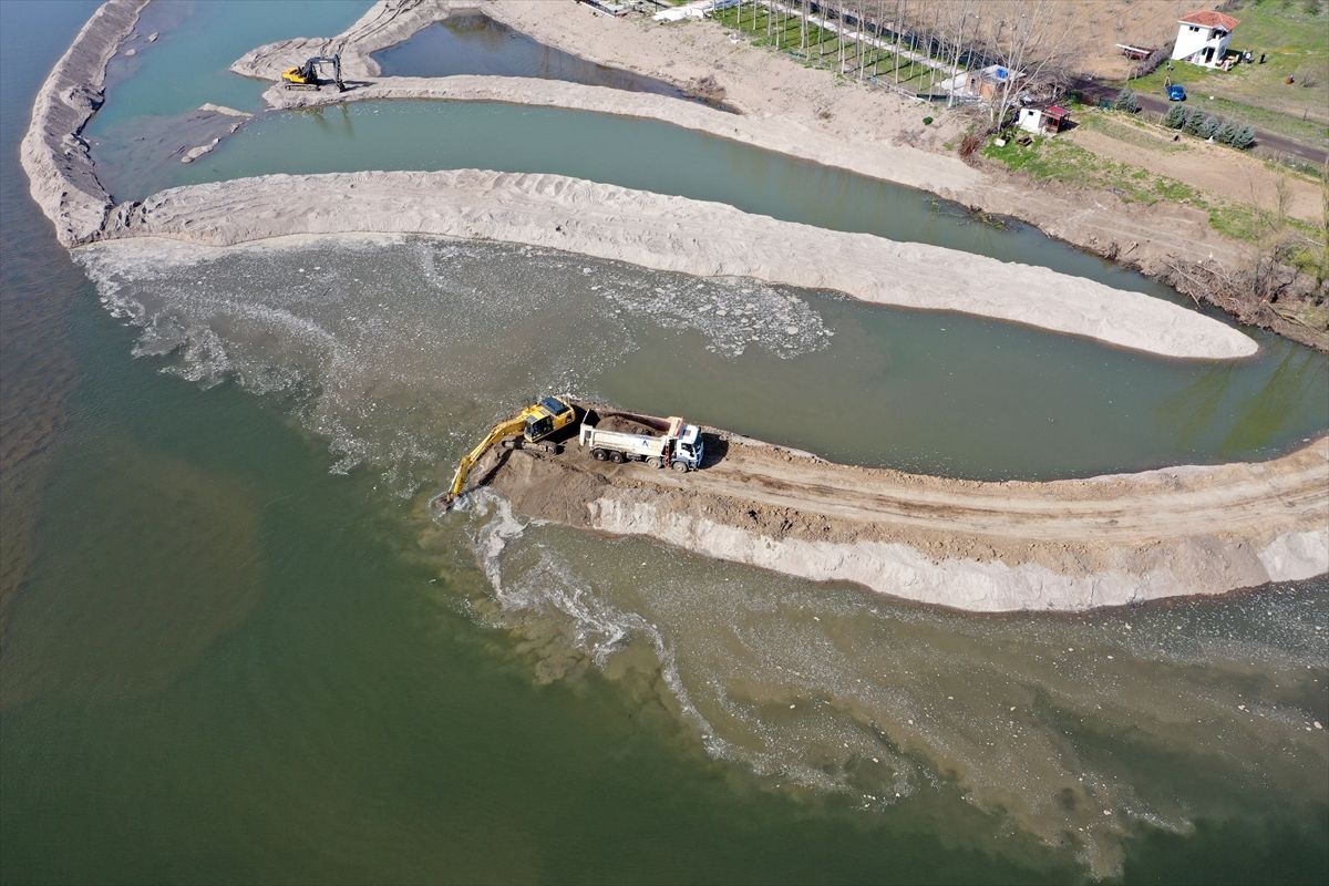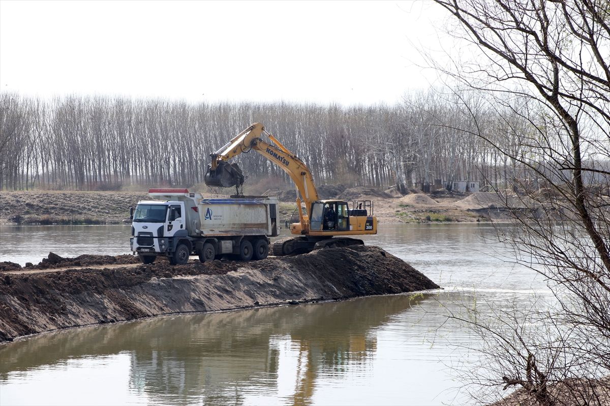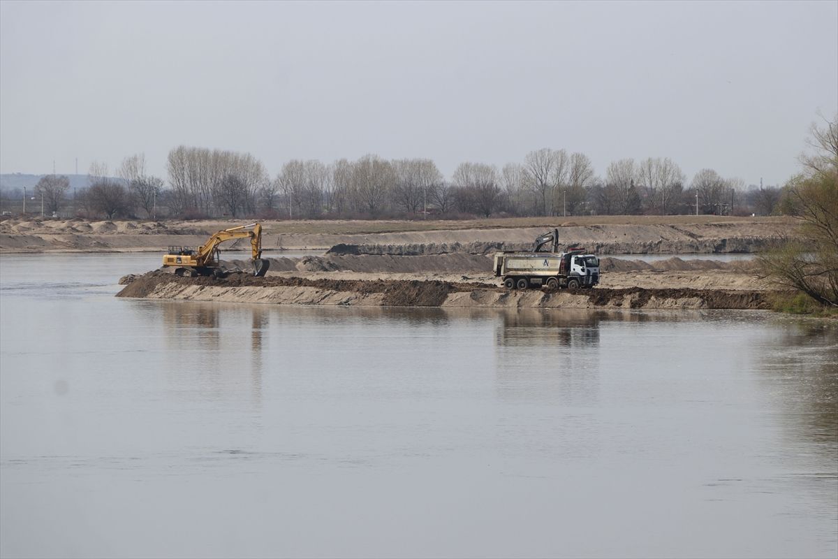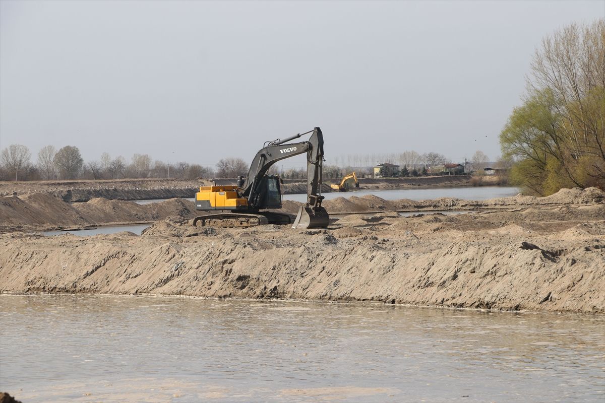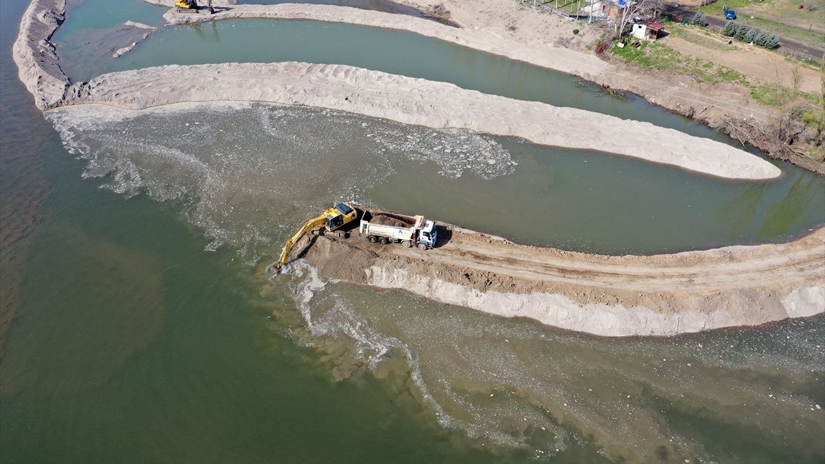 Edirne'de Meriç Nehri'nde olası taşkın riskine karşı yatak temizliği başlatıldı.