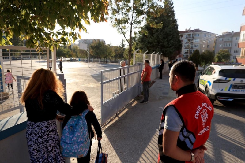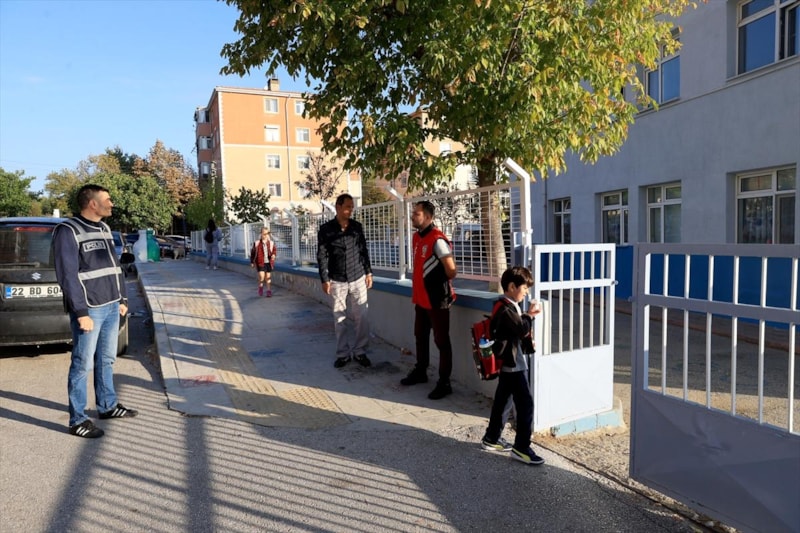 Edirne'de "okul polisi" ekipleri, okulların önlerinde ve civarında denetimlerini sürdürüyor.