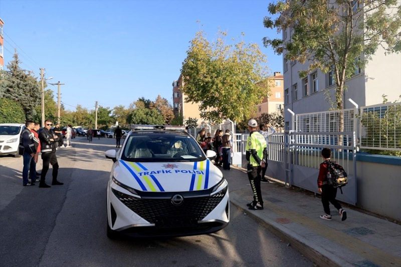 Kırmızı yelekli "okul polisi" ekipleri, öğrencilerin okullara girişlerini güvenli şekilde sağlıyor, trafik akışını düzenliyor.