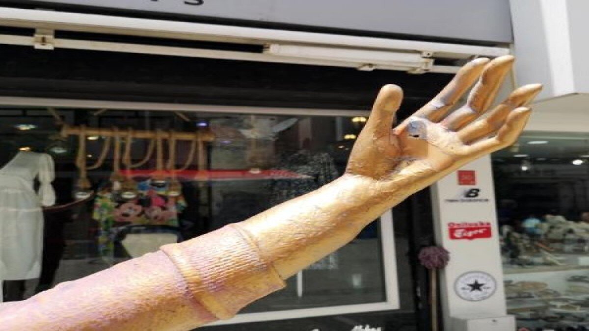 HEYKELİN ELİNDEKİ ALÇIDAN YAPILMA CEP TELEFONUNU ÇALDILAR