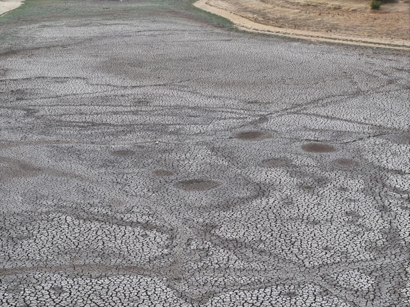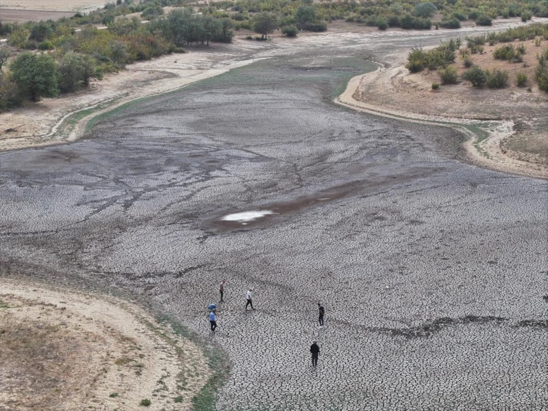 Kısa süreli sağanak geçişlerinin fayda sağlamaması ve göleti besleyen su kaynaklarının da kurumasıyla göletin suyu tamamen çekildi.