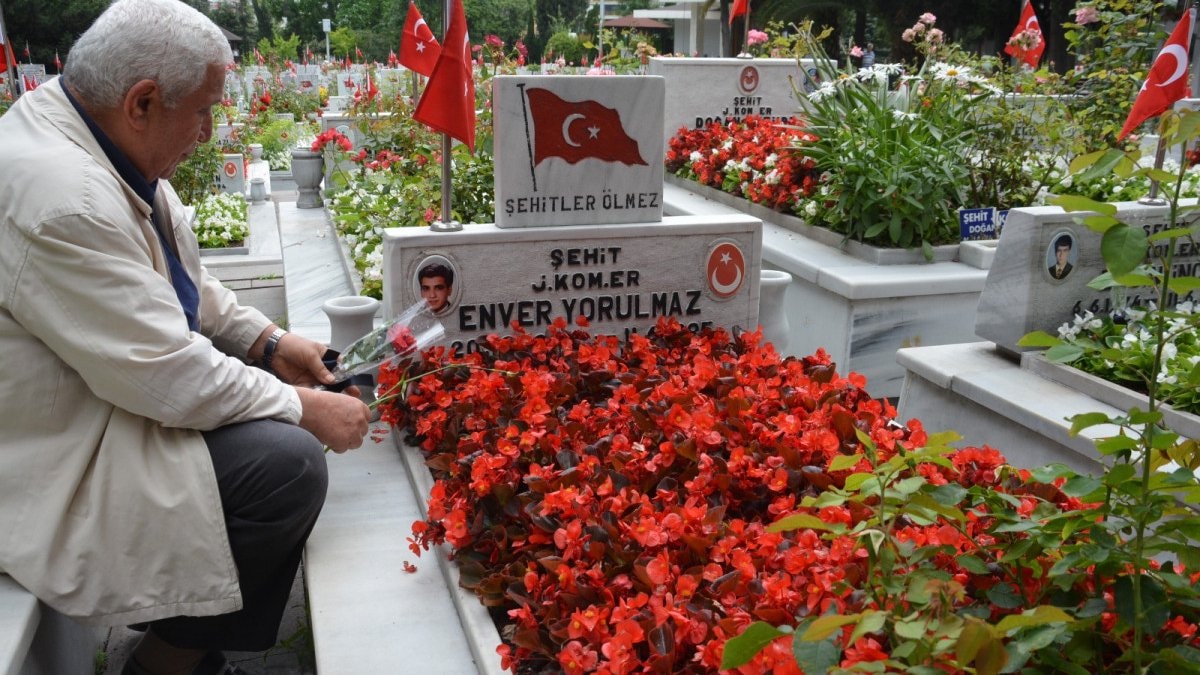Enver benim tek oğlumdu. Vatan için 18 arkadaşıyla birlikte şehit düştü. Acımız büyük. Özel günler bize acı veriyor. Oğlum bize gelemedi biz ona geldik. Yaşasaydı koşarak elimizi öpmeye gelirdi. Her cuma oğlumuzu ziyarete geliyoruz. Vatan sağ olsun, her şey vatan için. Allah kimseye evlat acısı vermesin.