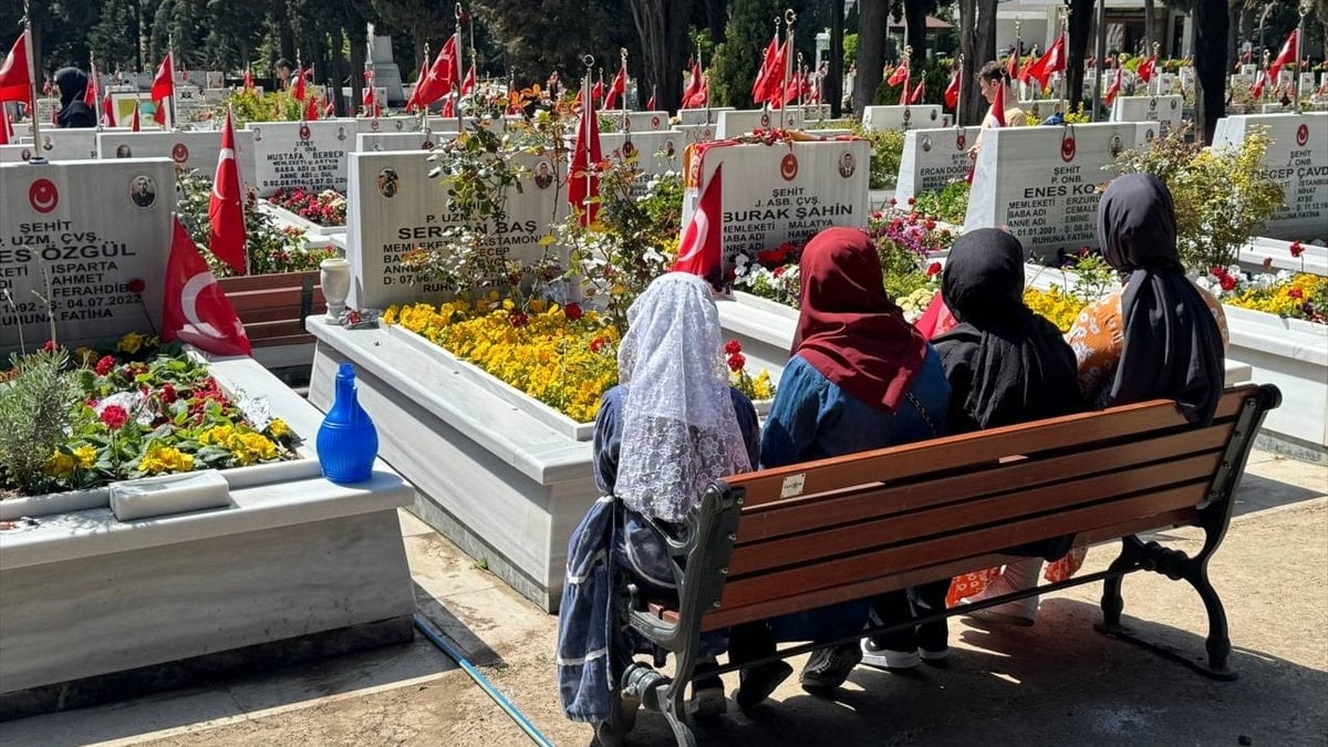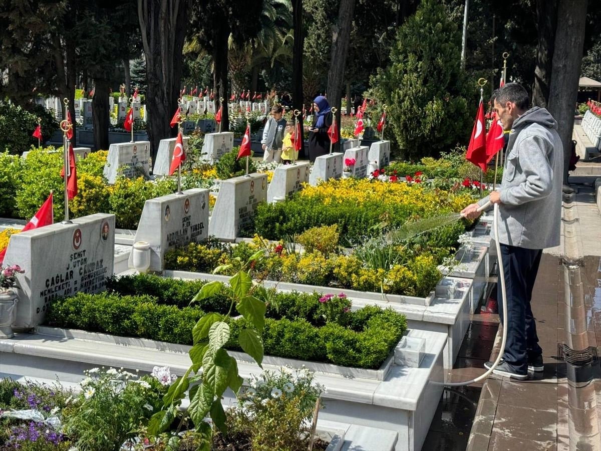 Şehit yakınları, sabah saatlerinden itibaren şehitliğe giderek kabirlere çiçek bıraktı ve temizlik yaptı.
