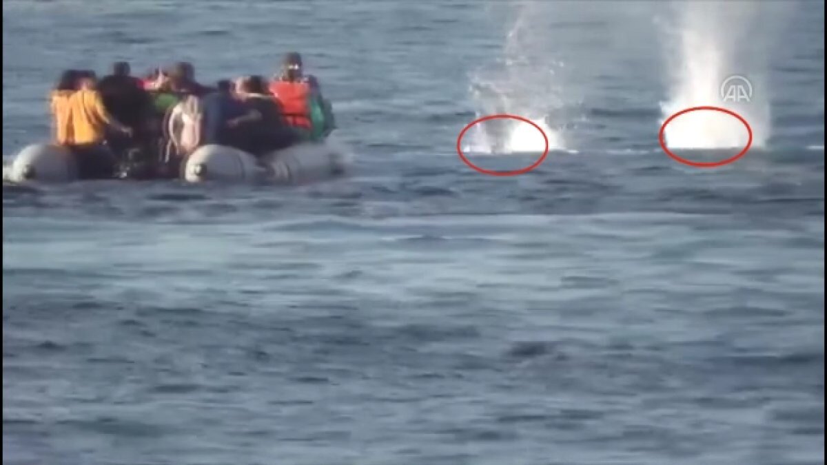 Görüntülerde, Yunan unsurlarının havaya ve botun çevresine ateş açtıkları anlar da yer alıyor.