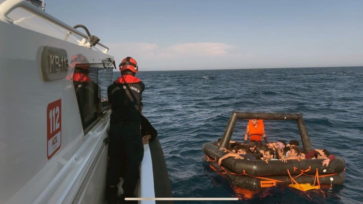 Marmaris ilçesi açıklarında can salları içerisinde çok sayıda düzensiz göçmen olduğu bilgisinin alınması üzerine bölgeye Sahil Güvenlik Botları gönderildi.