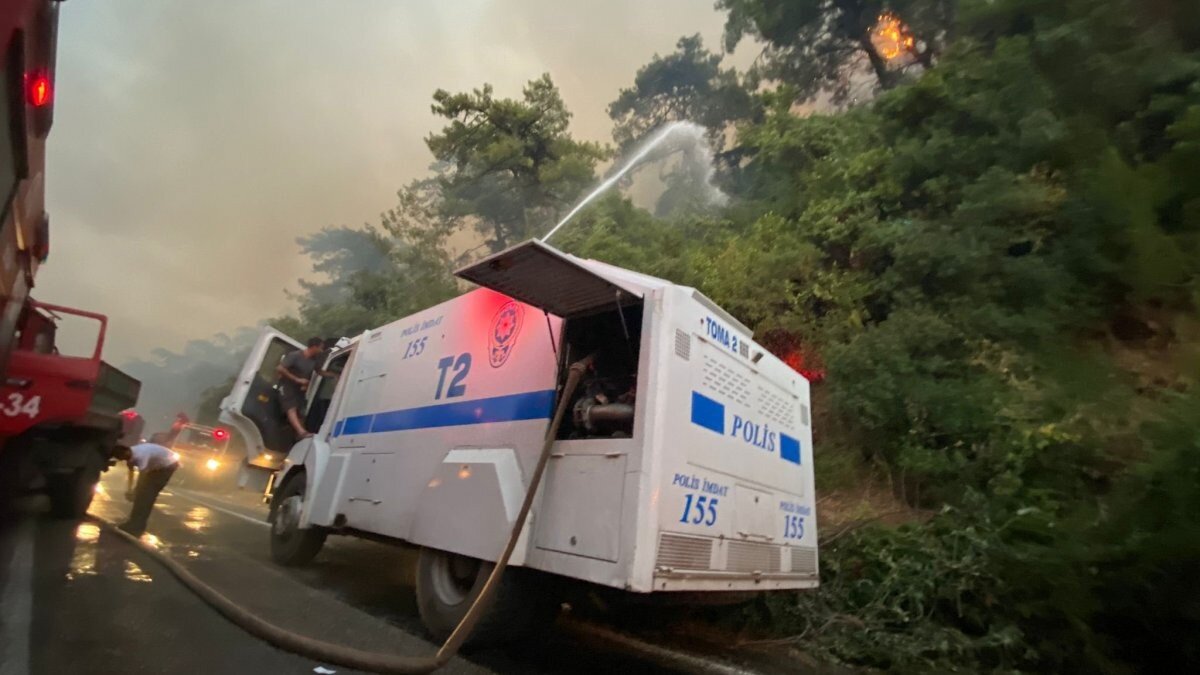 TOMA’ları yangın bölgesine yığan EGM'nin açıklamasında, “TOMA'larımız yangınlara müdahale için görev başında... Alevlerle savaşımız devam ediyor. Orman yangınları ile mücadeleye aralıksız destek veriyoruz.” denildi.