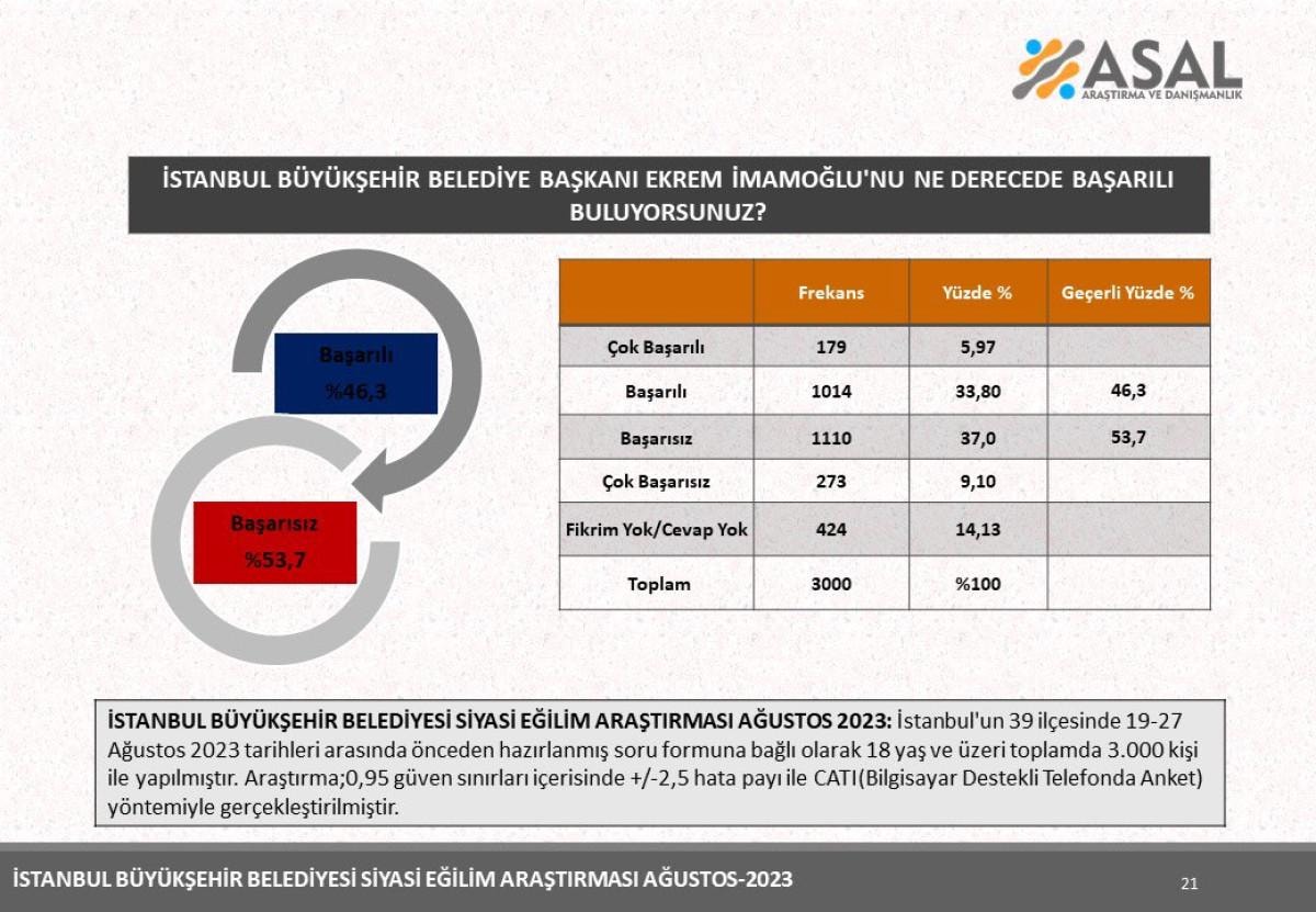 Yüzde 53,7'lik kısım ise İmamoğlu'nu başarısız bulduğunu söyledi.