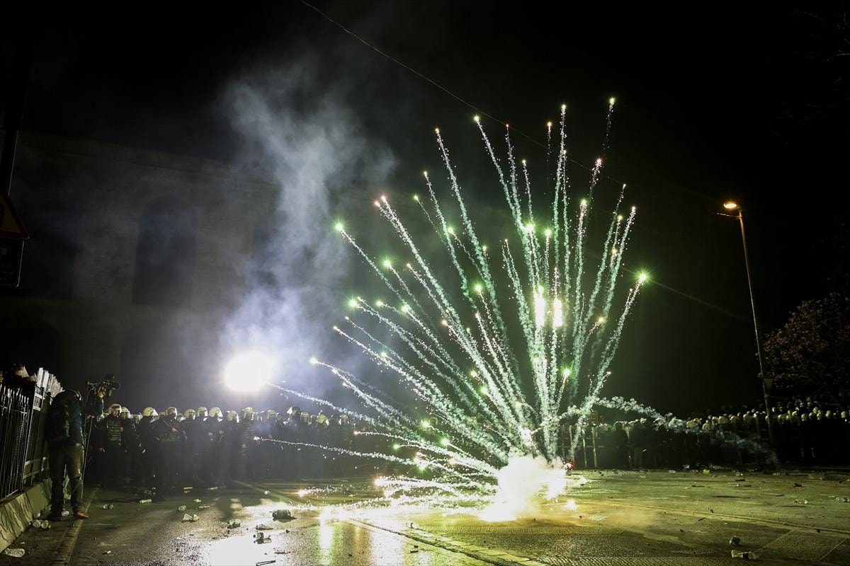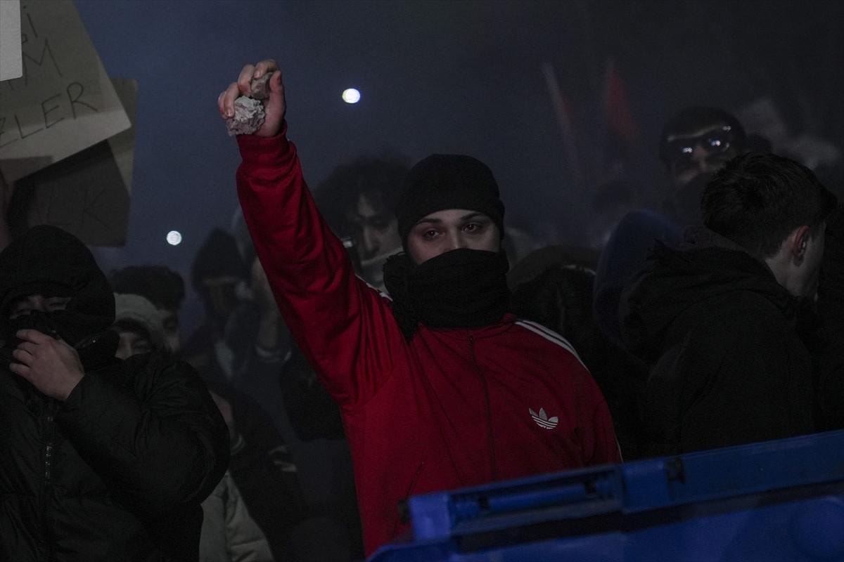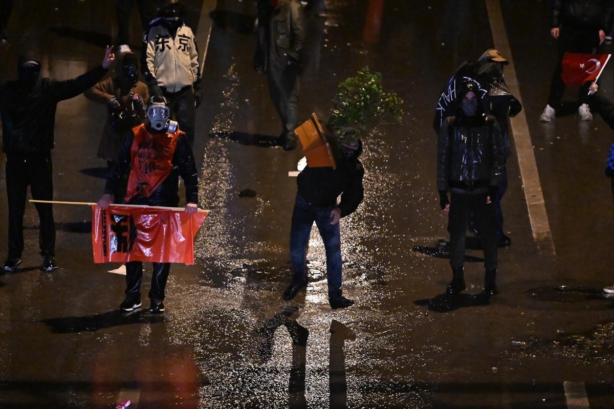 Tüm uyarılara rağmen dağılmayan grup, polis ekiplerine havai fişek, taş ve cam şişe attı.