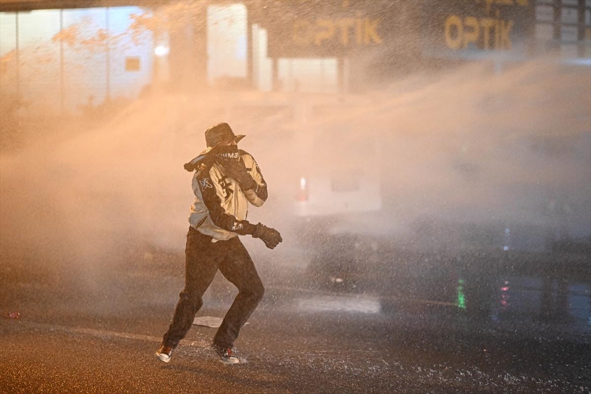 Polis ekiplerine saldıran gruba biber gazı ve tazyikli suyla müdahale edildi.