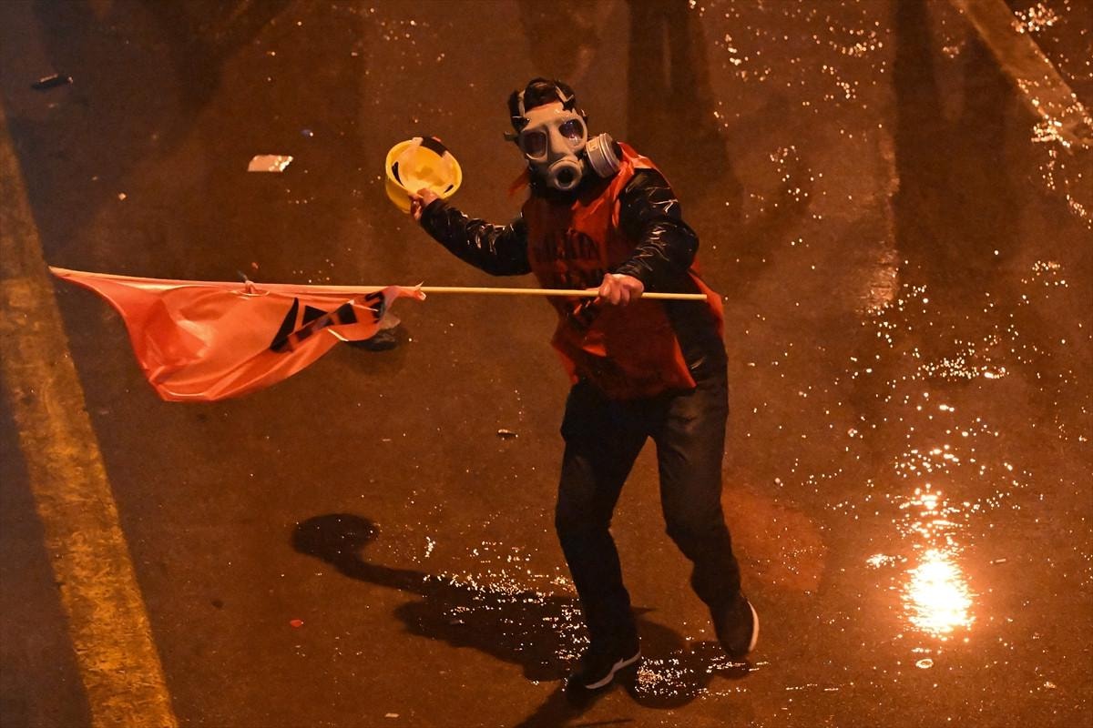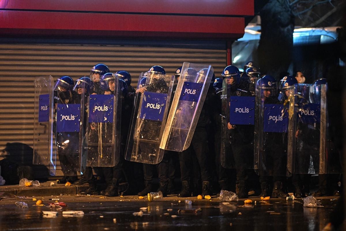Eylemcilere megafonla seslenen polis yetkilileri protestocular arasında provokatörlerin olduğunu ve polise taş atıldığını, yaralı polis memurları bulunduğunu ifade etti.