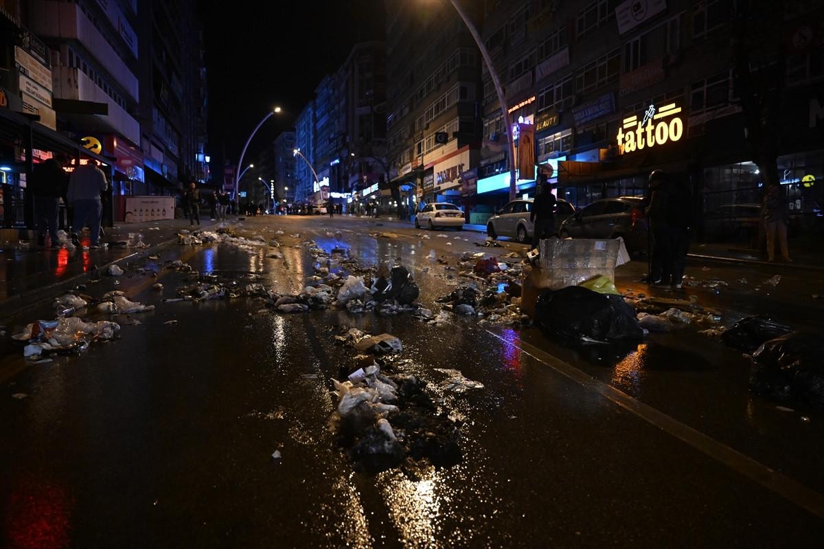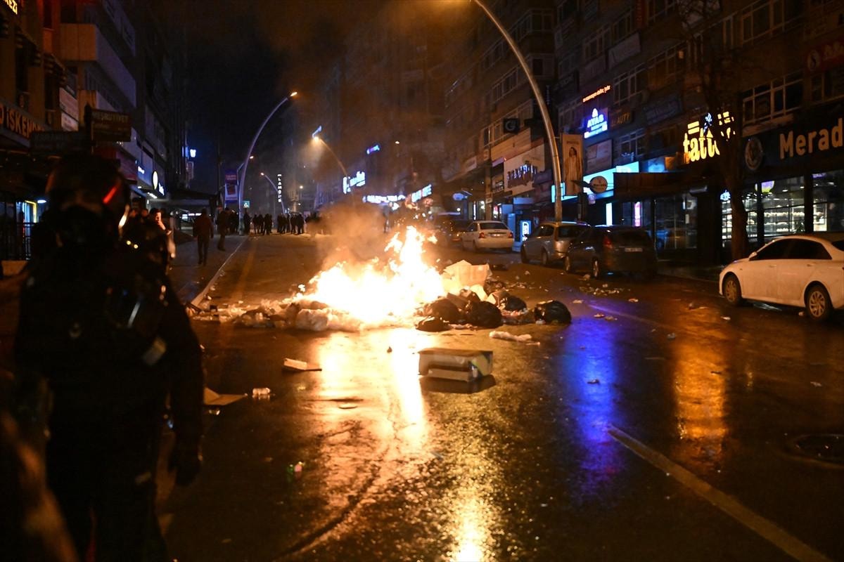 Eylemcilerden bazıları da çevreden topladıkları çeşitli eşyaları ateşe verdi.