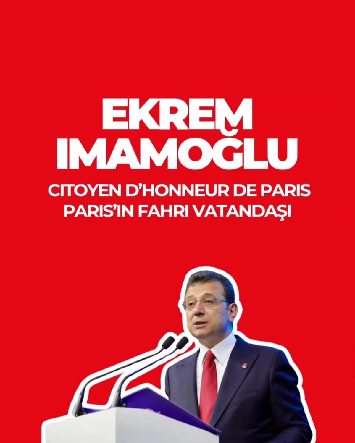 Fransa'nın başkenti Paris'teki belediye meclisinde yapılan oylamada, Ekrem İmamoğlu'na fahri vatandaşlık verildi.