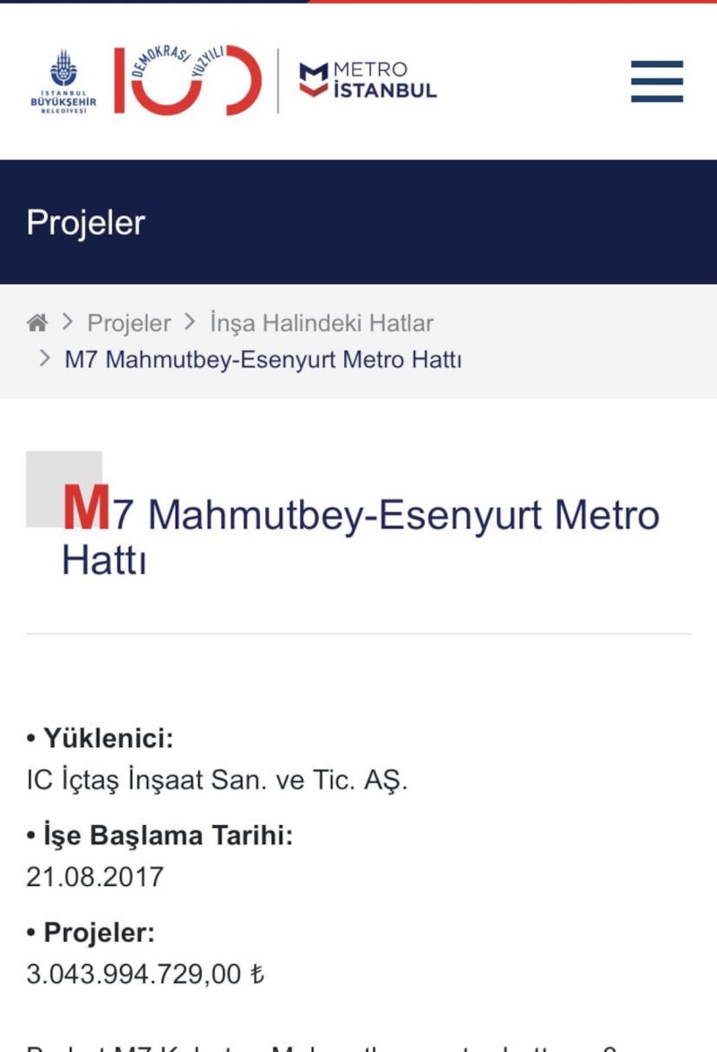 İBB'nin sitesinden elde edilen verilere göre Mahmutbey-Esenyurt Metro Hattı'nın temelinin 2017 yılında atıldığı ortaya çıktı.