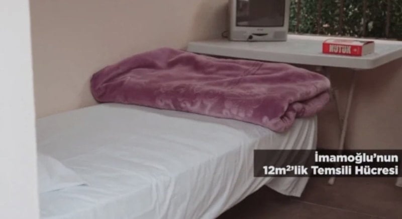 CHP’nin Silivri’de kurduğu Dayanışma Merkezi’nde, Marmara Cezaevi’nde tutuklu bulunan Ekrem İmamoğlu’nun hücresinin birebir örneği sergileniyordu. Ancak gelen şikayetler üzerine maket, bölgeden kaldırıldı.