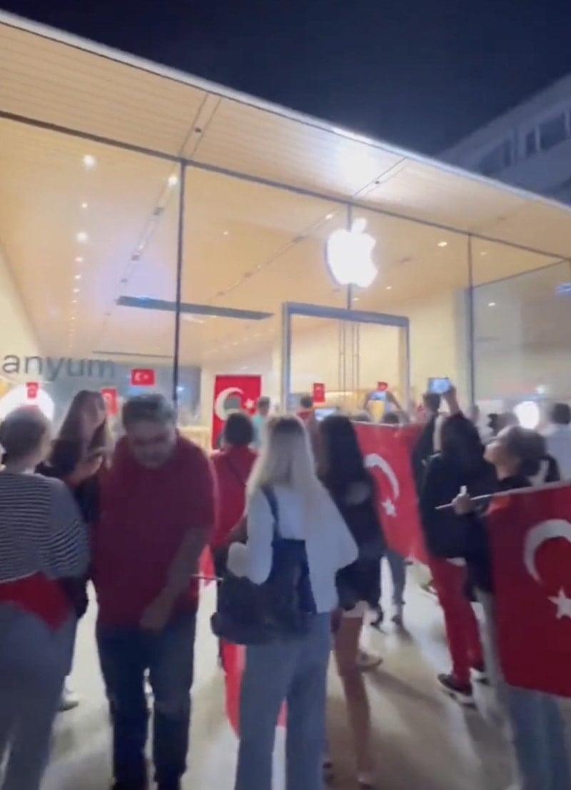 Caddebostan'da kutlamalara katılanlar, Apple'a tepki gösterip Türk bayraklarını camlara yapıştırdı.