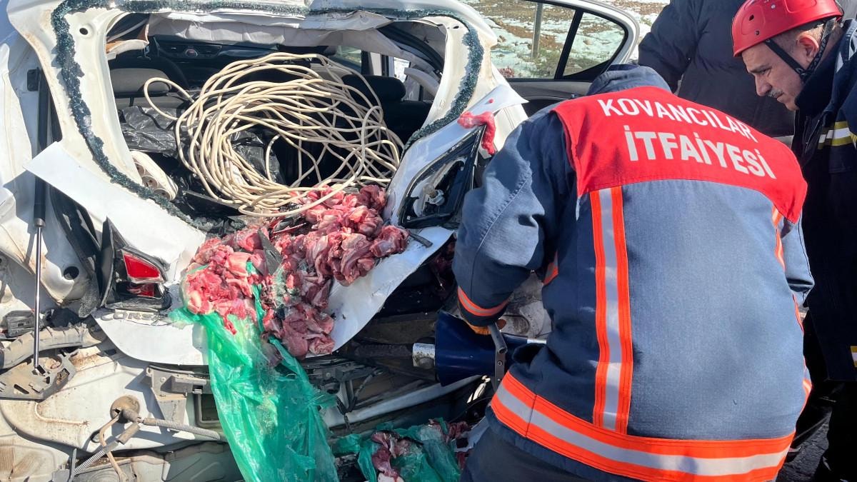Sıkışan yaralı, itfaiyenin müdahalesiyle bulunduğu yerden çıkarılarak sağlık ekiplerine teslim edildi.