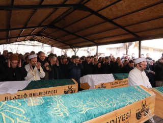 Elazığ merkez Sürsürü Mahallesi'nde yıkılan binada hayatını kaybeden Aişe ve eşi Mehmet Arifoğlu, kızları Halime Aslan ile torunları Miraç Ali ve Rüya Aslan için Kışla Camisinde tören düzenlendi.