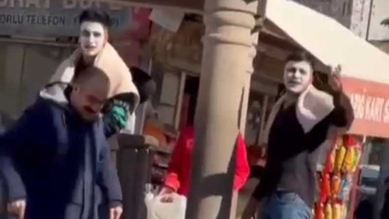 Kuaförde tıraş olurken iş yerinden suların kesilmesi nedeniyle yüzlerinde maske ile kalan 2 kişi, yüzlerini yıkamak için çeşmeye gitti. O anlar cep telefonu ile kayıt edildi.