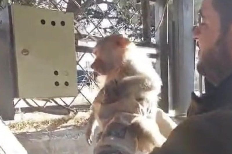 Bir süre baktığı hayvanın maymun olduğunu gören vatandaş, sakince yanına gittiği maymunu yakaladı.