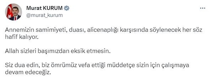Bakan Kurum paylaşımına şu notu ekledi: