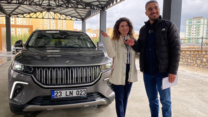 Togg'unu, eşi Ayça Akgün ve diğer aile üyeleri ile teslim alan Turgay Akgün, daha sonra şehir turu attı.