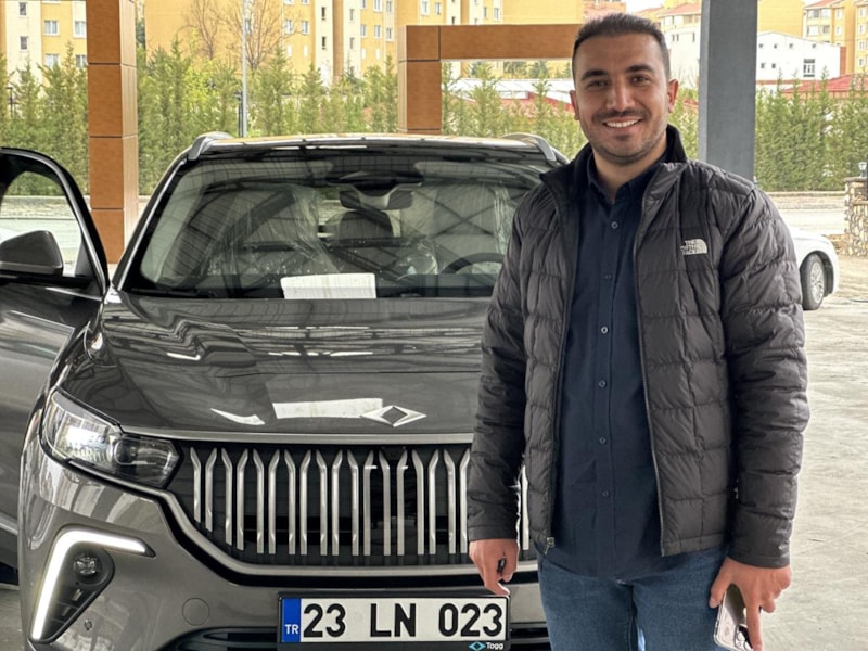 Bizde ilk 10’da olabilmenin mutluluğunu yaşıyoruz. Müthiş bir araba. Sahip olmak isteyen herkes umarım sahip olur. Emeği geçen herkesin eline sağlık. Hiç ses yok. Sadece müzik sesi var. Onun haricinde ne yol sesi ne de motor sesi var. Hiçbir şey yok. Elazığ’ın ilk Togg’u. Elazığ’ımıza ilk getirebilmenin de mutluluğunu yaşıyoruz. Vatandaşların ilgisi müthiş. Biz kimseye haber vermedik. Vermediğimiz halde bu şekilde. Sadece çekirdek ailemizle teslim almak istemiştik.