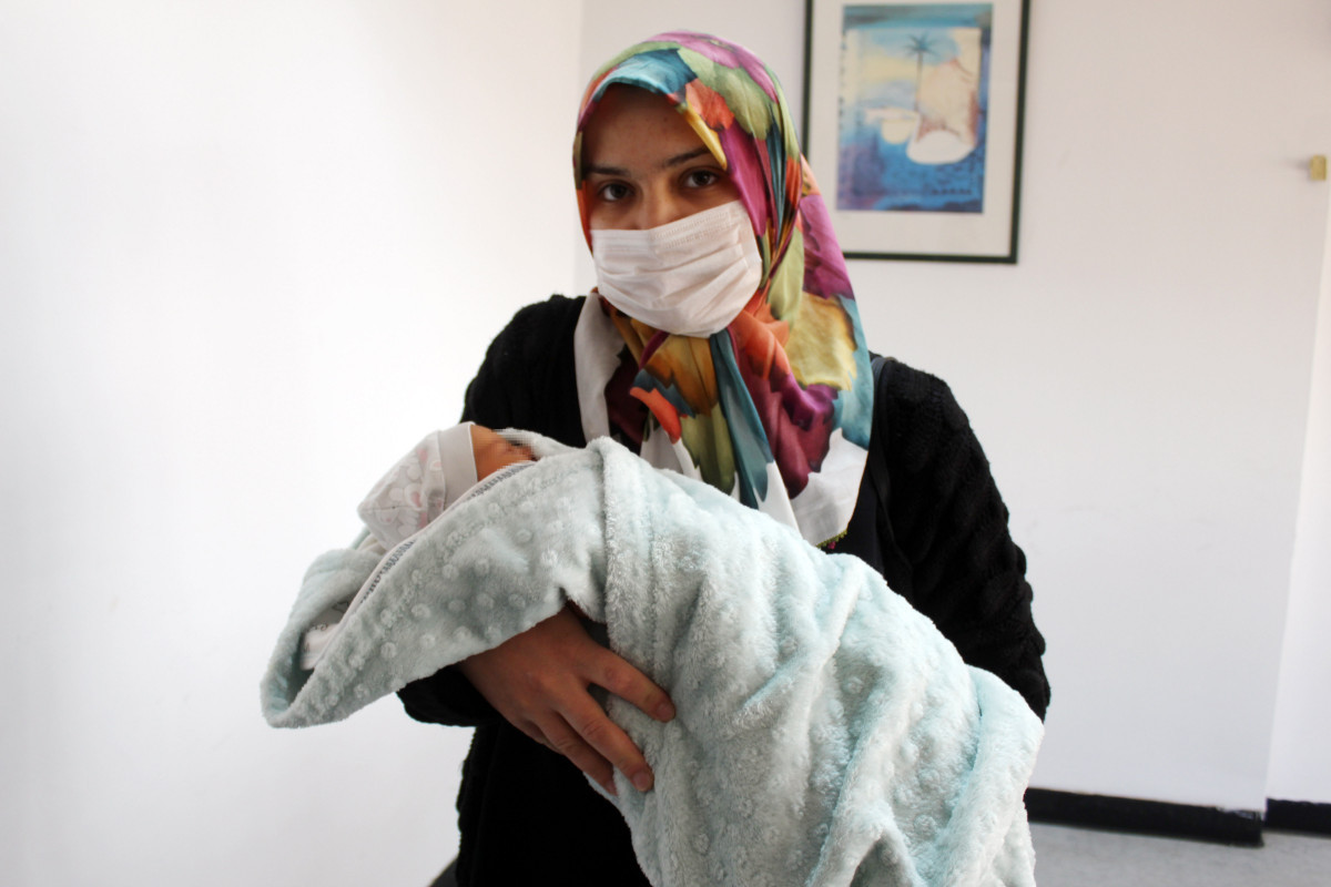 37 haftalık hamileydim. Bebeğimizin gelişim geriliği vardı. O halde deprem atlattık. Burada doğum sürecim başladı. Çadırda durumlar kötü olduğu için sağ olsun yakınımız gelip, aldı. Bebeğim sarılık geçirdi. Biraz önce kıyafetlerini giydirdik. Mavi ışığı daha biraz önce kapattılar.