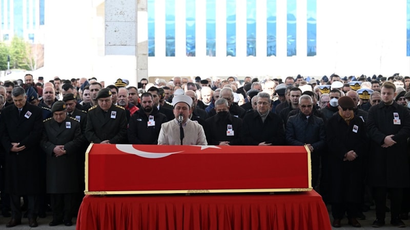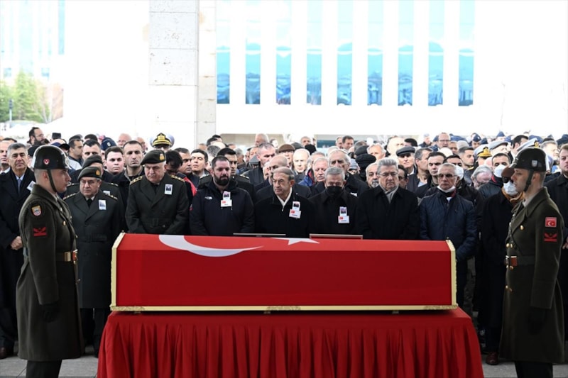 Cenaze namazı öncesi subaylar Saldıray Berk'in tabutu başında saygı nöbeti tuttu.
