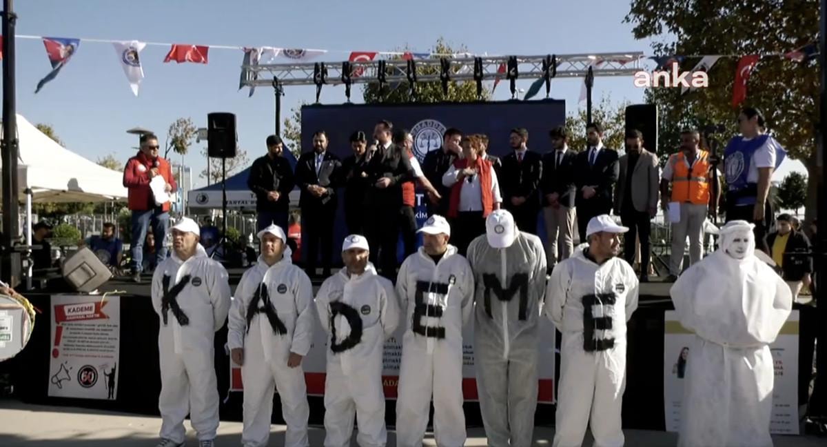KADEMELİ EMEKLİLİĞE TAKILANLAR MİTİNGİ DÜZENLEDİ