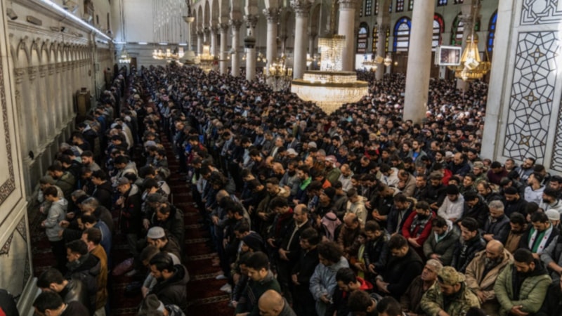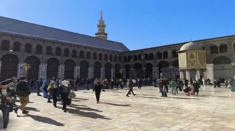 Suriye'de 61 yıllık Esad rejiminin devrilmesinin ardından tarihi Emevi Camii, insan akınına uğruyor.