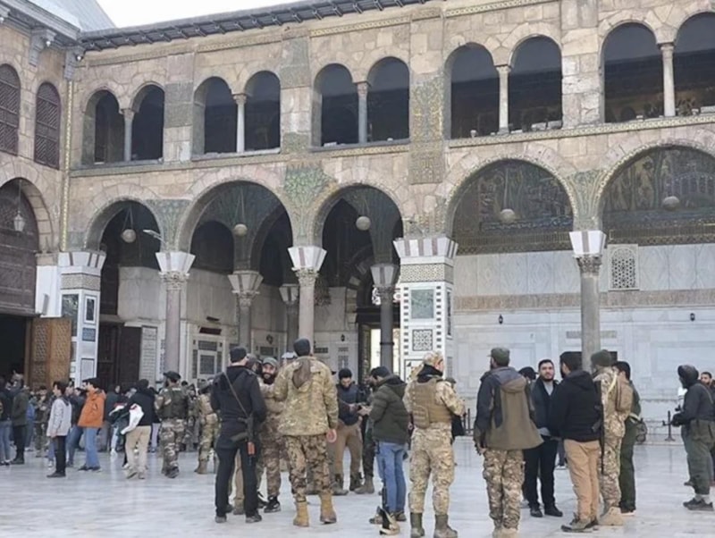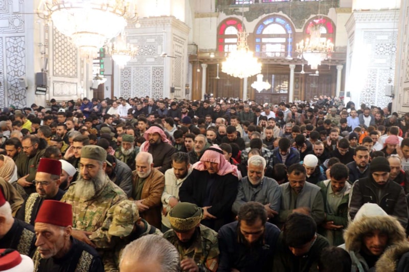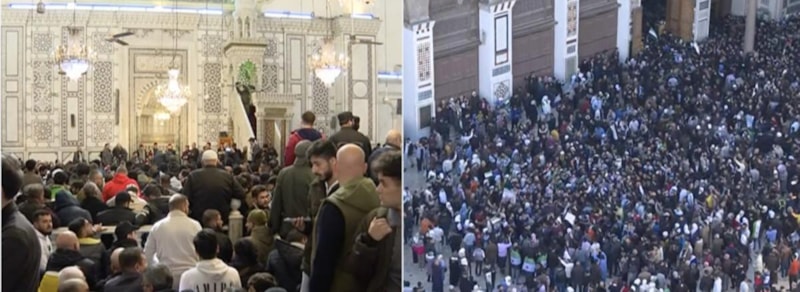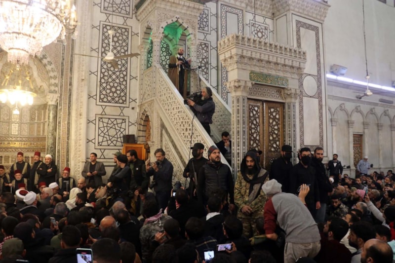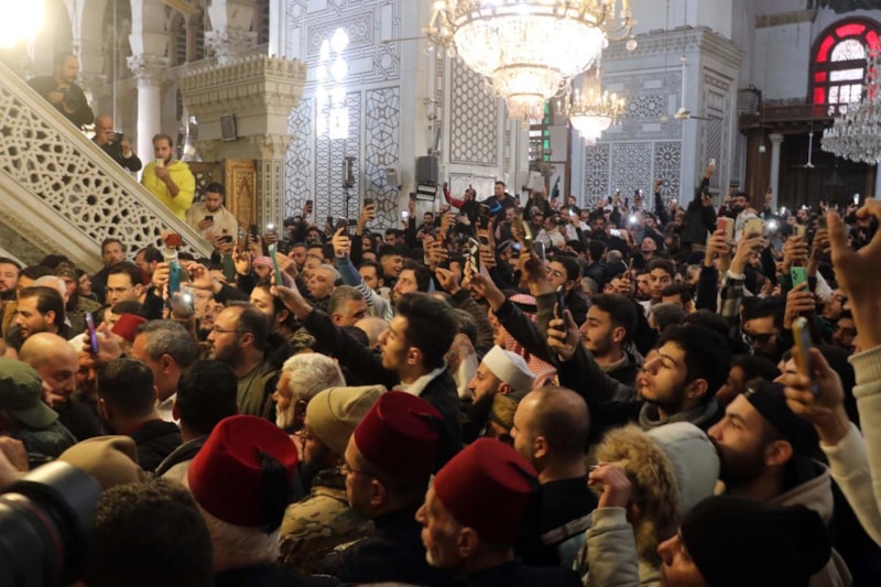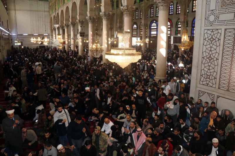 Şam'da halk, Esad rejiminin devrilmesinin ardından ilk cuma namazını kılmak üzere tarihi öneme sahip Emevi Camii'nde toplandı.