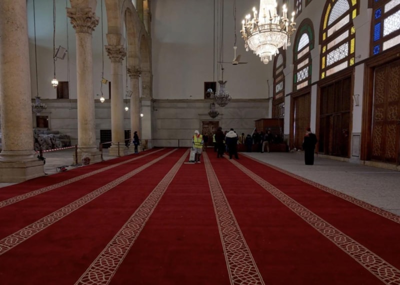 Başkent Şam'daki Emevi Camii'nin ibadete açılan bölümüne, Gaziantepli ustaların özenle dokuduğu halılar serildi.