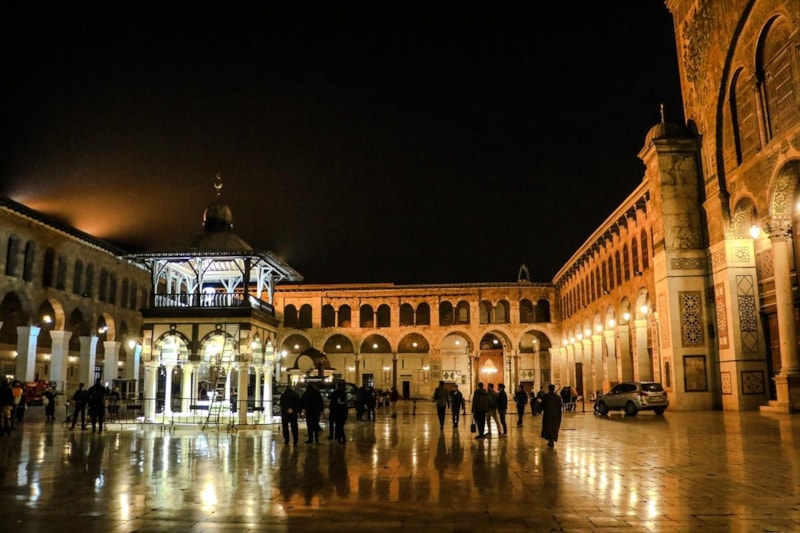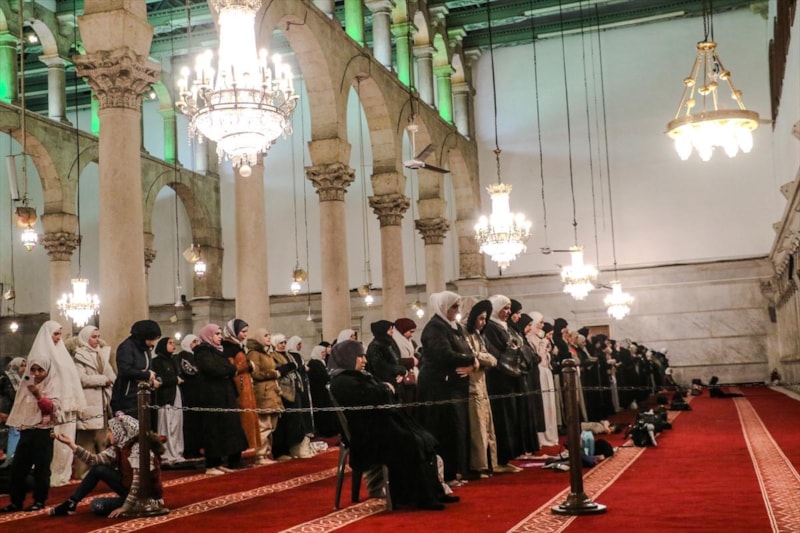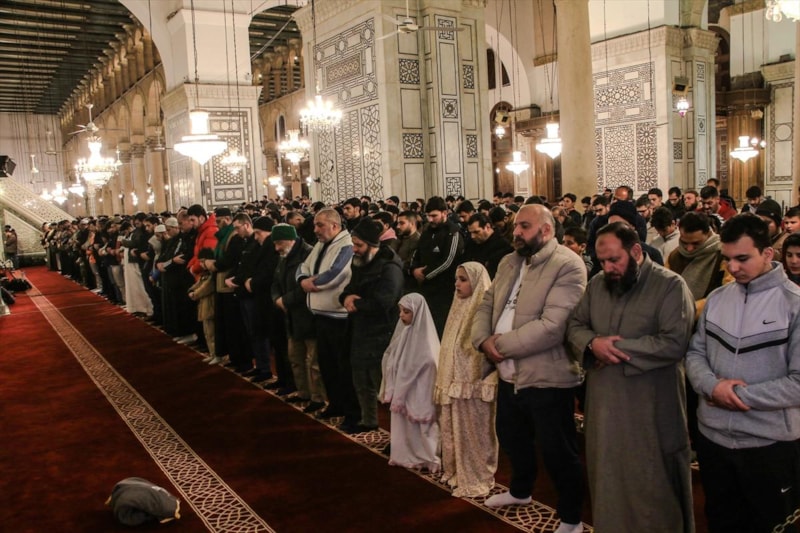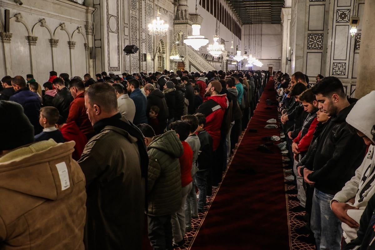 Esad rejiminin devrilmesiyle yenilenen tarihi camiye Suriyelilerin yanı sıra farklı bölgelerden gelen binlerce kişi, 50 yıl sonra ilk kez Esad ailesi için dua edilmeden teravih namazlarını kıldı.