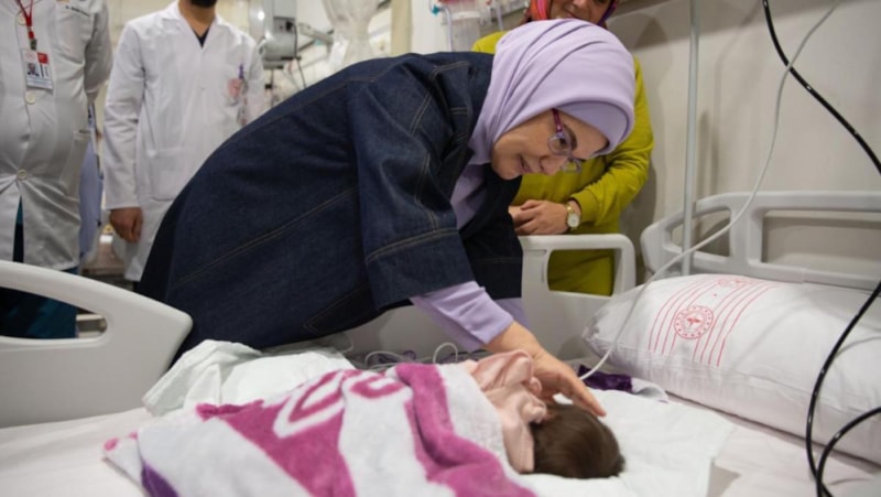 Erdoğan, bebekleri Ankara'da karşılamış, daha sonra 9 Şubat 2023'te Etlik Şehir Hastanesinde tedavi altına alınan bebekleri ziyaret ederek, sağlık durumlarına ilişkin bilgi alıp, tedavi süreçlerini de yakından takip etmişti.