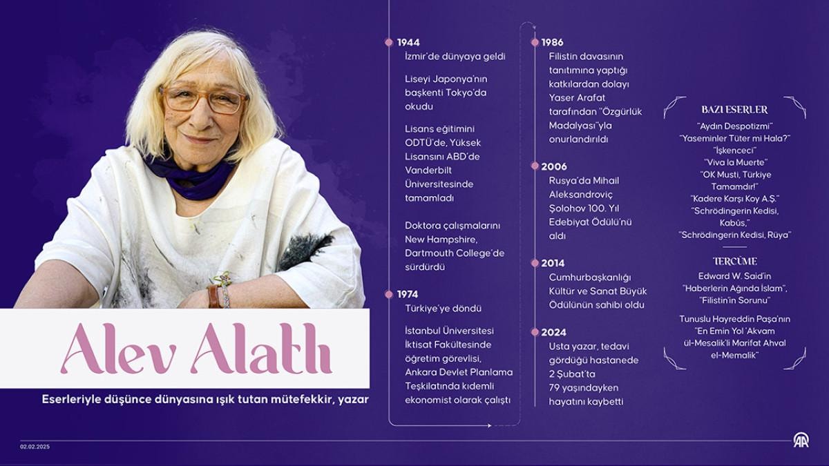 Eserleriyle düşünce dünyasına ışık tutan mütefekkir, yazar Alev Alatlı, 2 Şubat 2024 tarihinde hayata veda etmişti.
