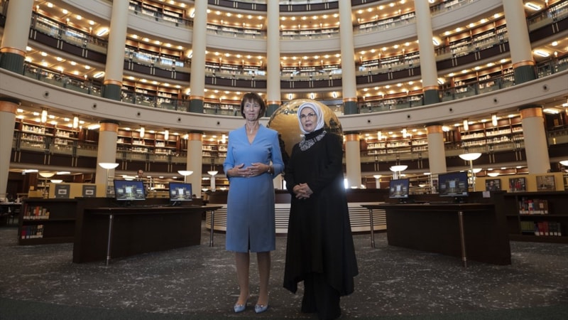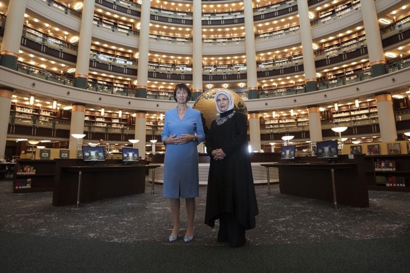 Cumhurbaşkanı Recep Tayyip Erdoğan'ın eşi Emine Erdoğan, Almanya Başbakanı Friedrich Merz'in eşi Charlotte Merz ile Cumhurbaşkanlığı Millet Kütüphanesi'ni ziyaret etti.