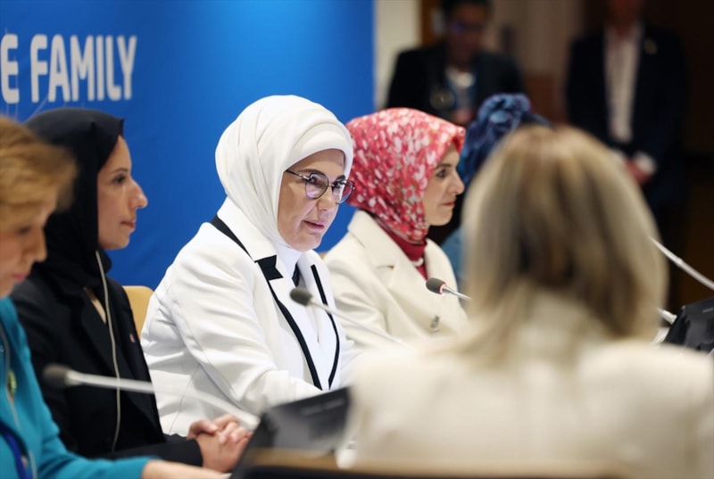 Cumhurbaşkanı Erdoğan'ın eşi, Birleşmiş Milletler Sıfır Atık Yüksek Düzeyli Şahsiyetler Danışma Kurulu Başkanı Emine Erdoğan, BM Genel Merkezi’nde düzenlenen ‘Birlikte Daha İyiye: Aileden Başlayan Küresel Dayanışma’ programında konuştu.