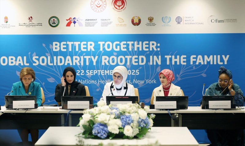 Emine Erdoğan, sosyal medya hesabından yaptığı paylaşımda, “Birleşmiş Milletler 80’inci Genel Kurulu kapsamında BM Genel Merkezi’nde, Aile ve Sosyal Hizmetler Bakanlığımızın ev sahipliğinde düzenlenen ‘Birlikte Daha İyiye: Aileden Başlayan Küresel Dayanışma’ programında uluslararası önemli isimlerle bir araya gelmekten memnuniyet duydum.